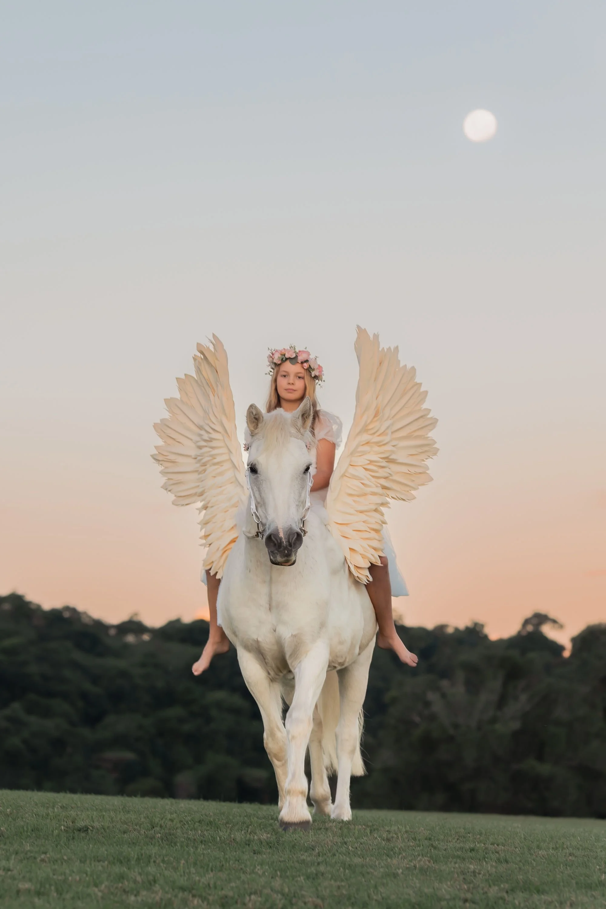 Dress up with your Pegasus, crowns, wings flower garlands and bio glitter supplied.